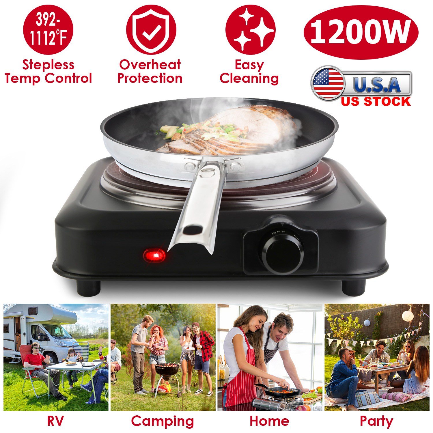 Home > 1200W Electric Infrared Single Burner Portable Heating Hot Plate Stove Countertop RV Hotplate with 7.5” Glass Cooktop Stepless Temperature Adjustments