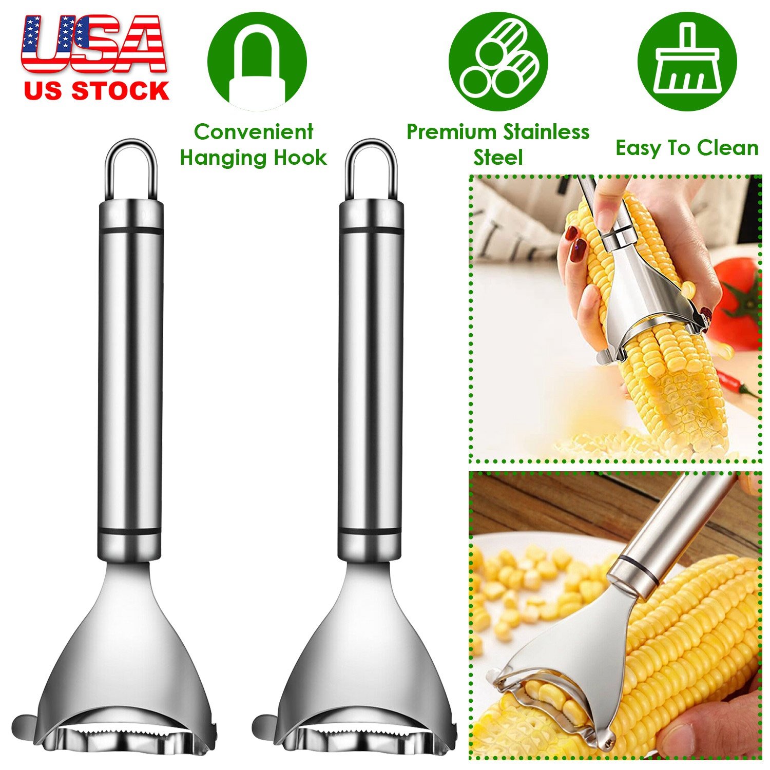 Home > 2Pcs Stainless Steel Corn Cob Peelers One-Step Cob Kerneler Remover Kitchen Corn Stripper Cutter Slicer Thresher Tool